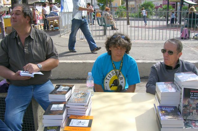 attend ses livres sous le regard de Jean Contrucci